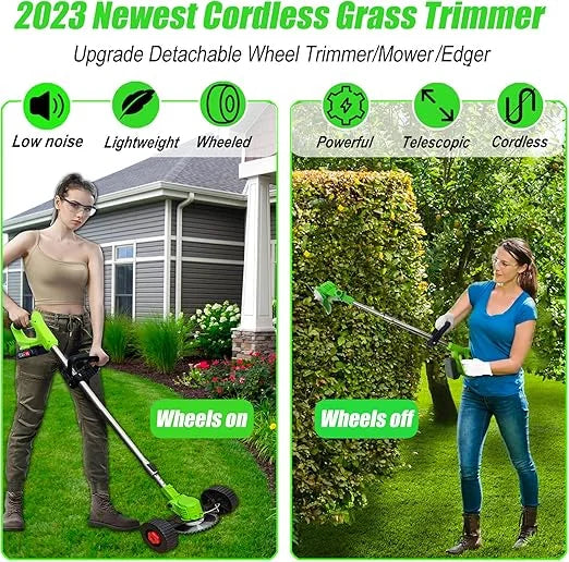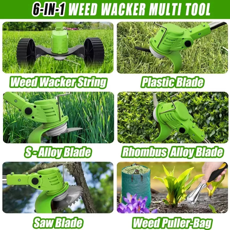 ✅ Accesorios Incluidos: 5 hojas plásticas, 2 hojas metálicas de disco, 2 hojas metálicas para podar, 2 baterías de litio recargables de 24 V, gafas de protección, manual de uso y cargador de pared